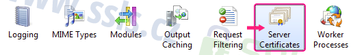 Vyberte web, pro který chcete vygenerovat CSR žádost a mezi ikonami otevřete Server Certificates