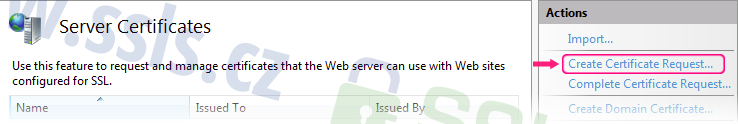 V pravé části okna klikněte na Create Certificate Request…