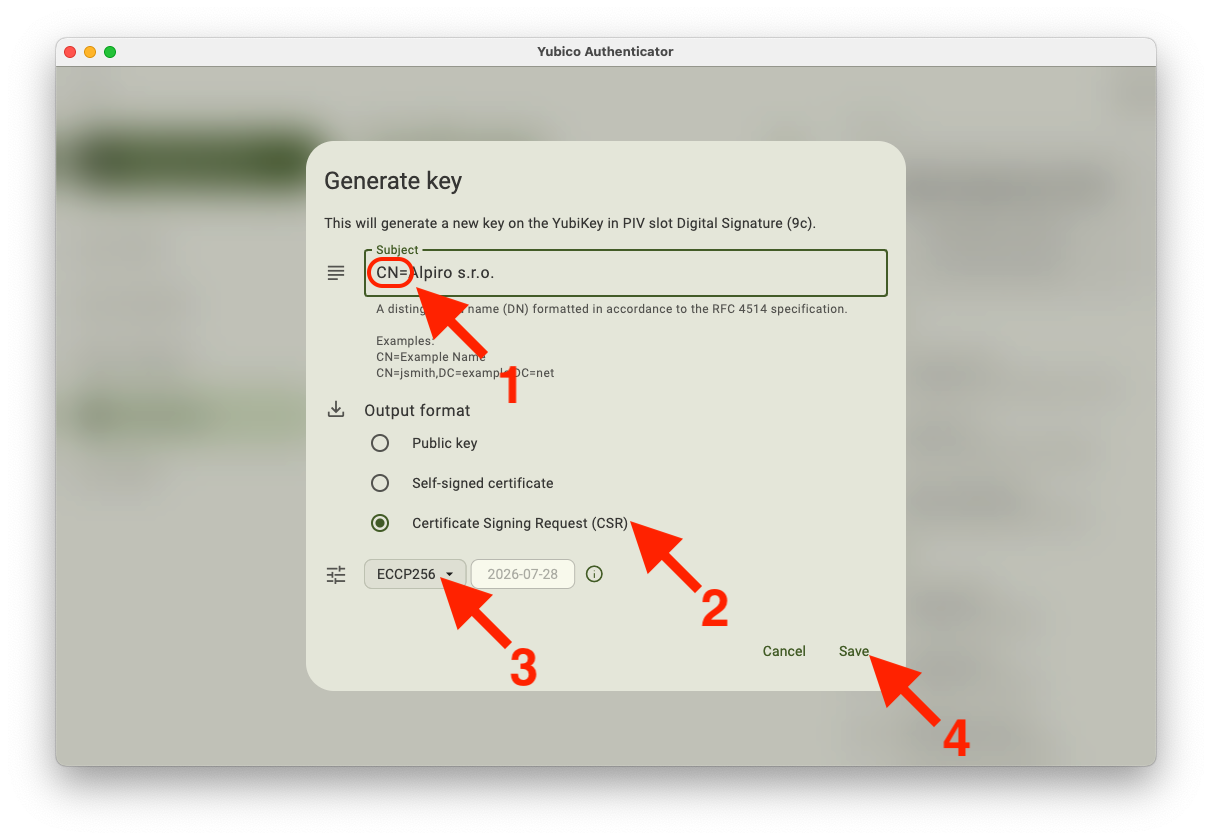 - CSR žádost vygenerovanou pomocí YubiKey FIPS tokenu v souboru