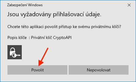 Pouze při prvním digitálním podpisu se zobrazí okno, kde potvrdíte kliknutím na tlačítko Povolit.
