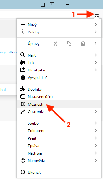 Otevřete aplikaci Thunderbird, v pravém horním rohu klikněte na ikonu menu ☰ a vyberte Možnosti