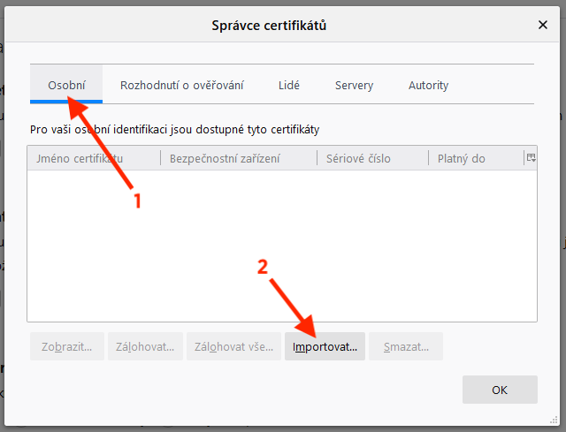 1/3: Import certifikátu