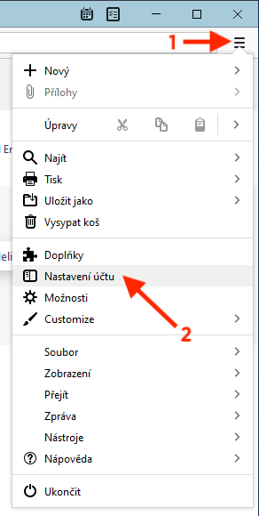 V pravém horním rohu aplikace Thunderbird znovu klikněte na ikonu menu ☰ a tentokrát vyberte Nastavení účtu.