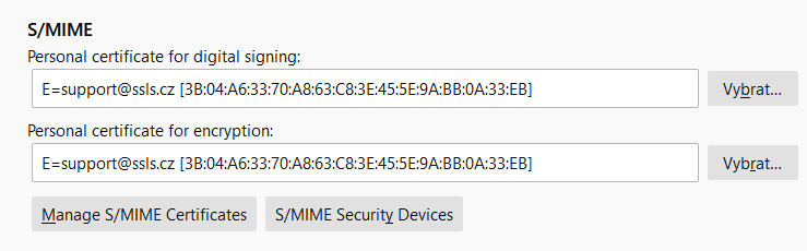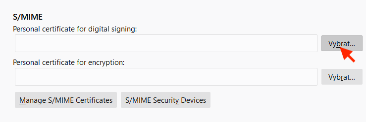 V sekci s nadpisem S/MIME klikněte na první tlačítko Vybrat….